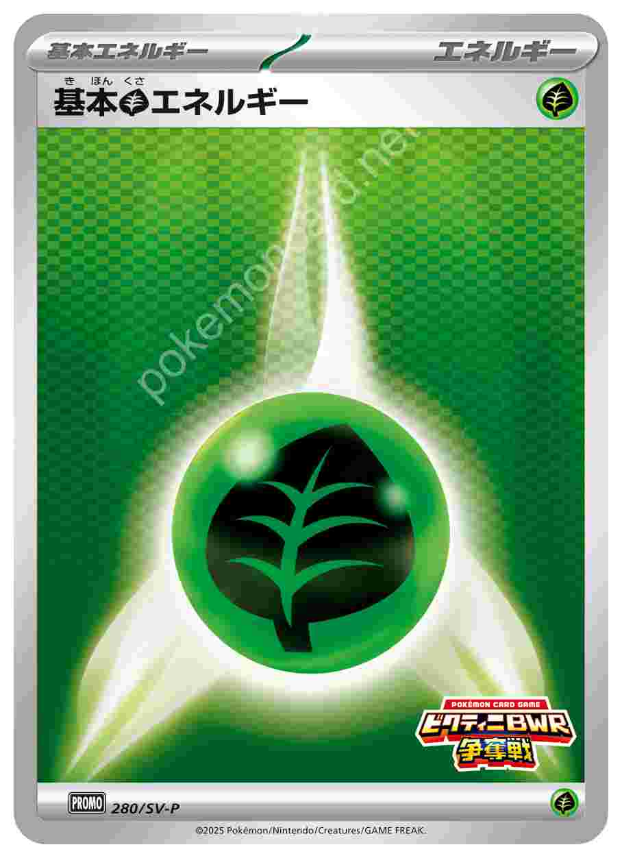 ![]() | 基本草エネルギー | 基本エネルギー | 「ブラックボルト・ホワイトフレア」デッキ構築戦で使用可能なカード | ★★★ | 280/SV-P |