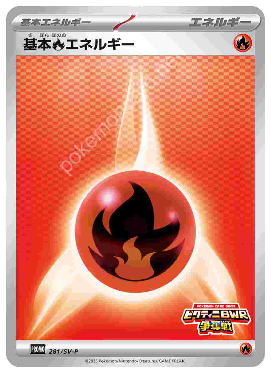 ![]() | 基本炎エネルギー | 基本エネルギー | 「ブラックボルト・ホワイトフレア」デッキ構築戦で使用可能なカード | ★★★ | 281/SV-P |