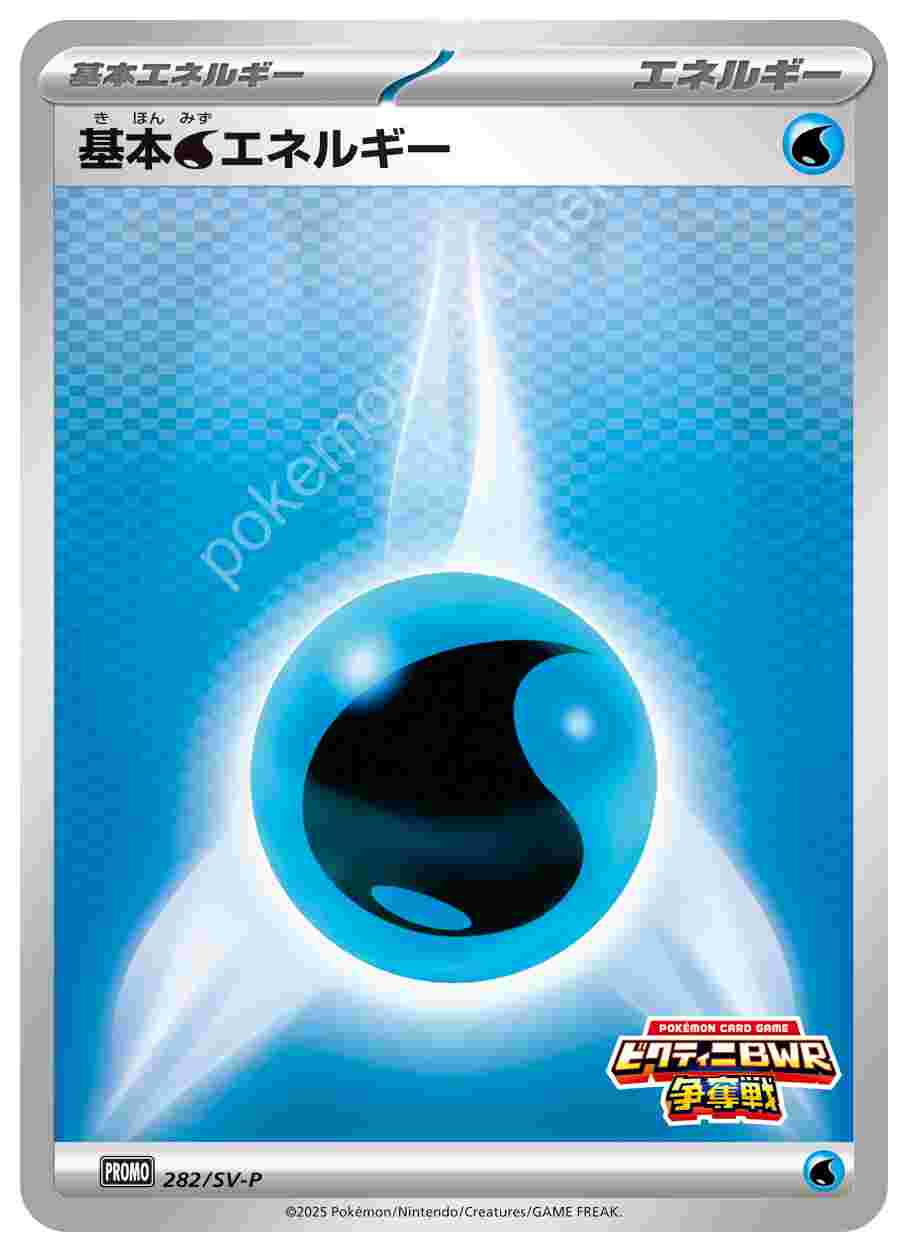 ![]() | 基本水エネルギー | 基本エネルギー | 「ブラックボルト・ホワイトフレア」デッキ構築戦で使用可能なカード | ★★★ | 282/SV-P |