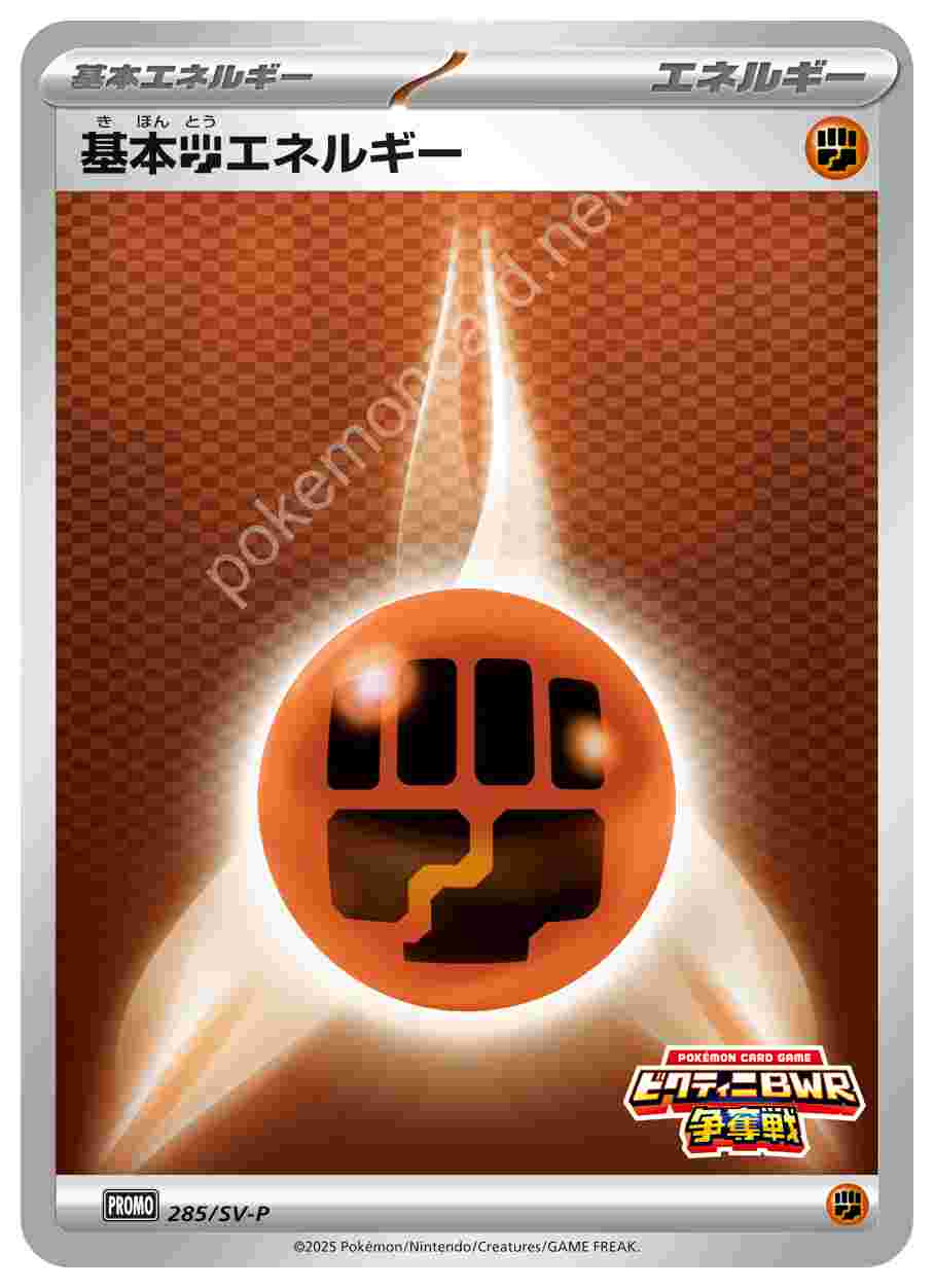![]() | 基本闘エネルギー | 基本エネルギー | 「ブラックボルト・ホワイトフレア」デッキ構築戦で使用可能なカード | ★★★ | 285/SV-P |