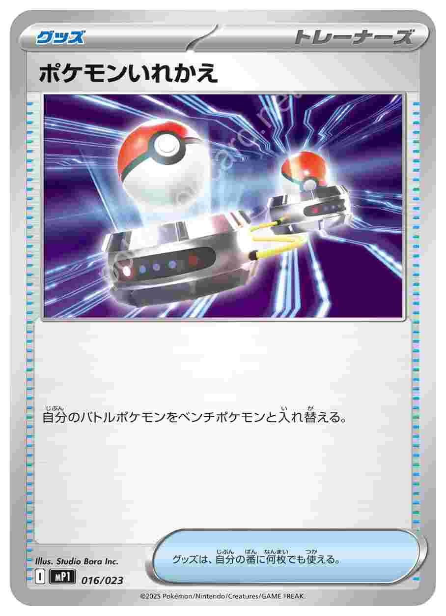 ![]() | ポケモンいれかえ | グッズ | 自分のバトルポケモンをベンチポケモンと入れ替える。グッズは、自分の番に何枚でも使える。 | スタートデッキ100 バトルコレクション コロちゃおVer. | ★★★ | 016/023 |
