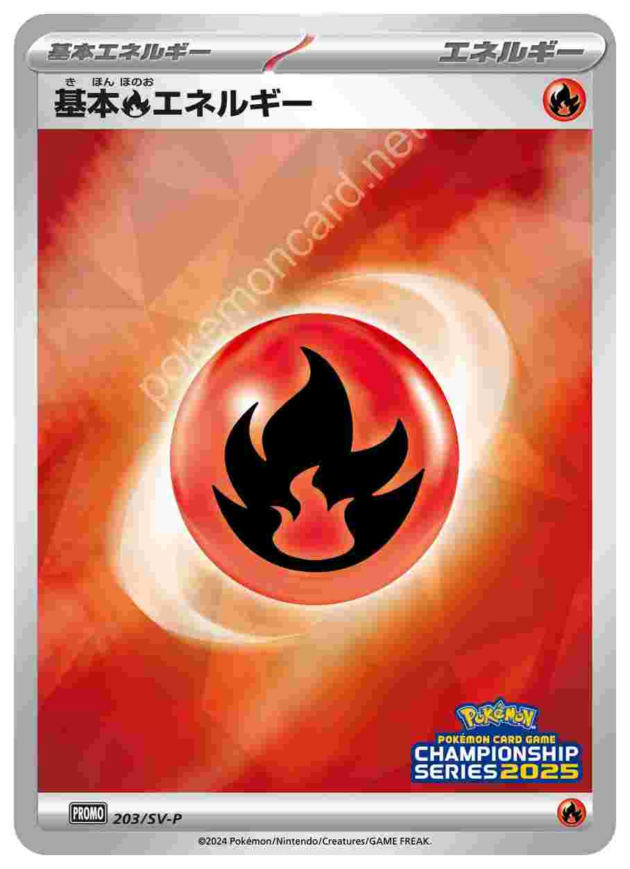 ![]() | 基本炎エネルギー | 基本エネルギー | ポケモンカードゲームチャンピオンシップシリーズ2025 | ★★★ | 203/SV-P |