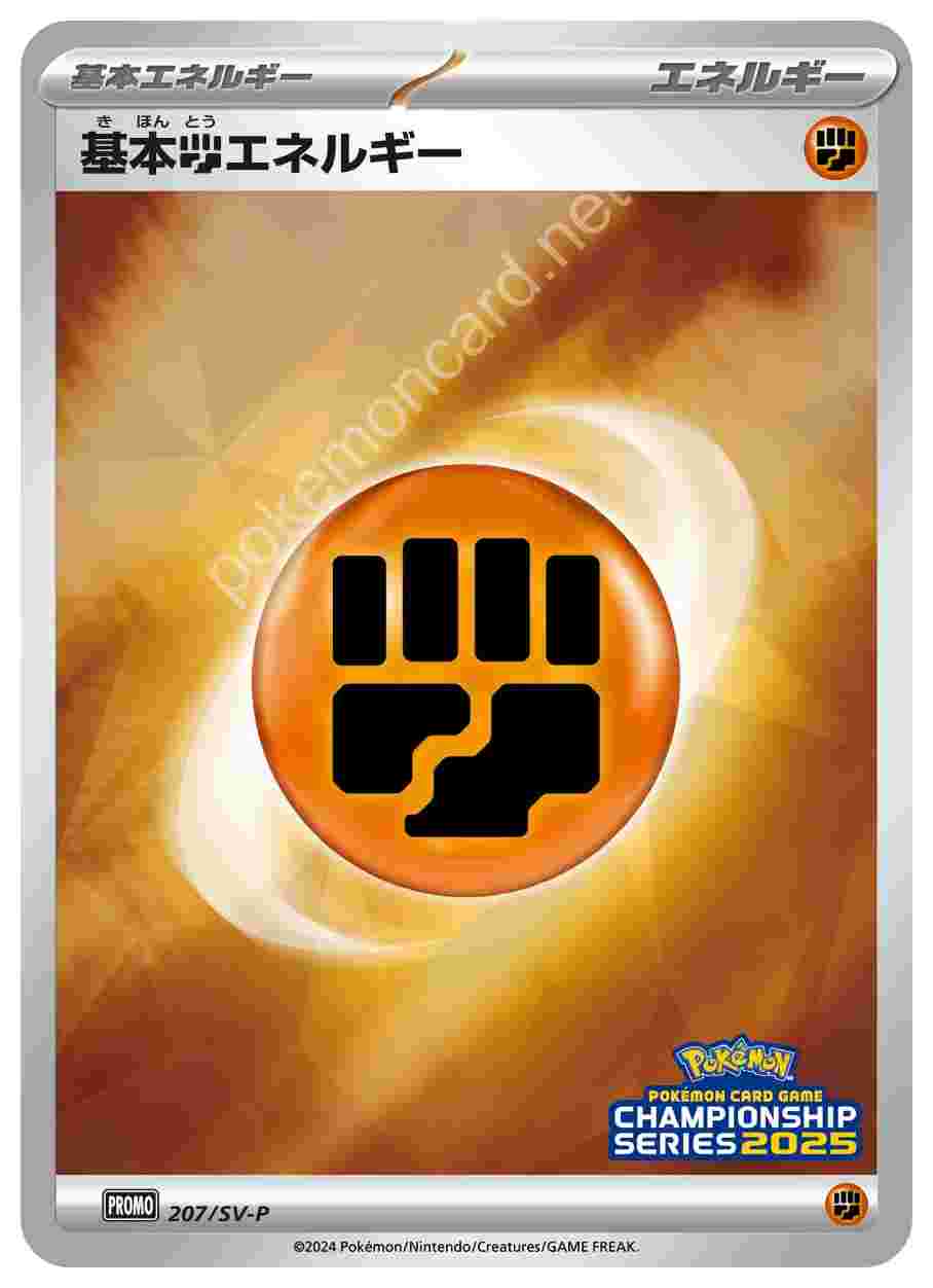 ![]() | 基本闘エネルギー | 基本エネルギー | ポケモンカードゲームチャンピオンシップシリーズ2025 | ★★★ | 207/SV-P |