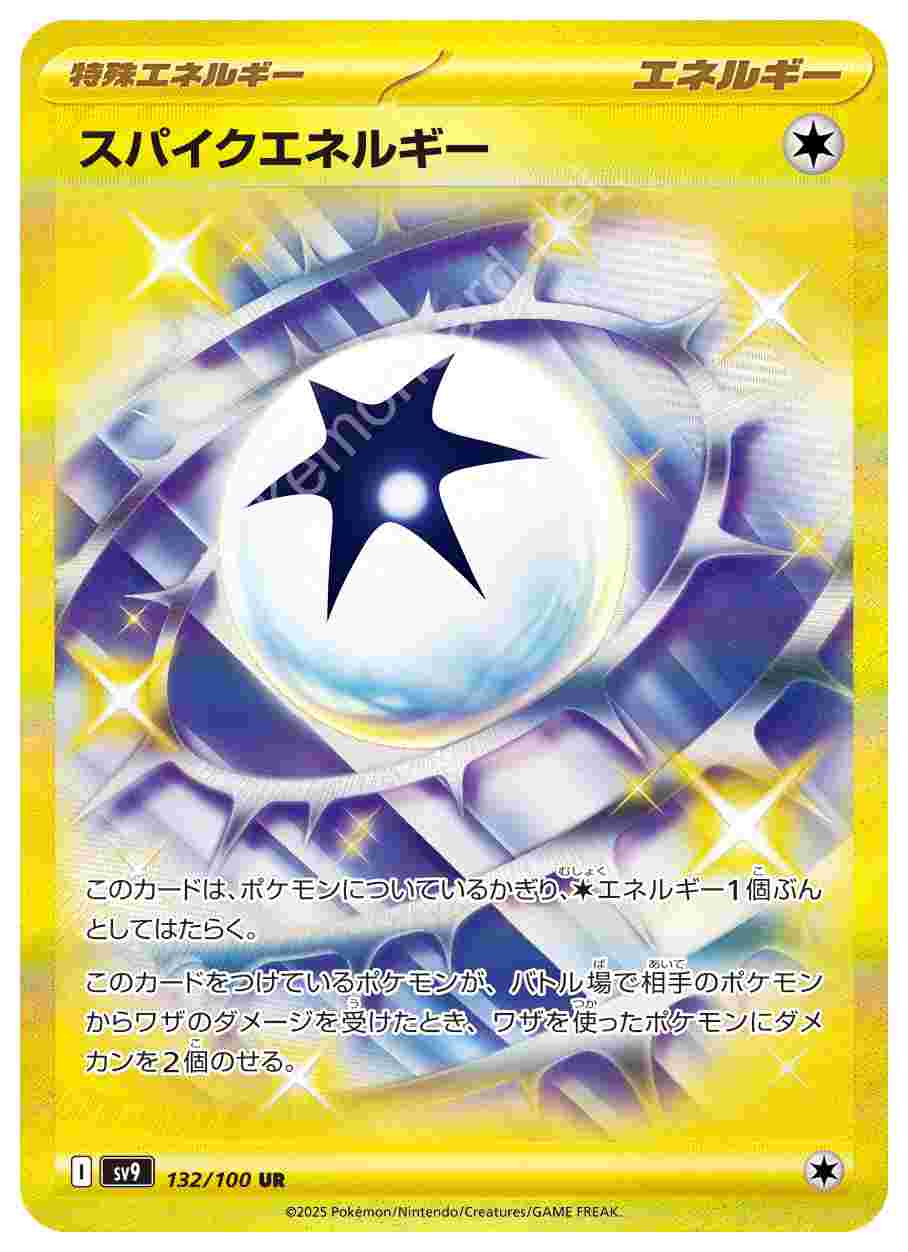 ![]() | スパイクエネルギー | 特殊エネルギー | このカードは、ポケモンについているかぎり、 このカードをつけているポケモンが、バトル場で相手のポケモンからワザのダメージを受けたとき、ワザを使ったポケモンにダメカンを2個のせる。 | 拡張パック「バトルパートナーズ」 | ★★★ | 132/100 |